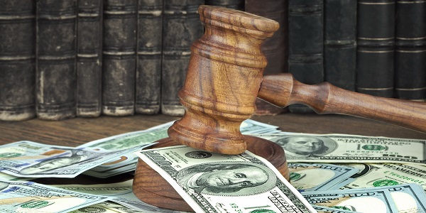 Auction Or Trial Concept With Judges Gavel And Money Heap