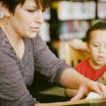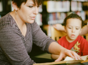 Mother and son reading