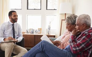 Senior Couple Meeting With Male Financial Advisor At Home