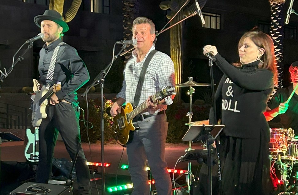 Marc Swearengin of Mize CPAs performing on stage with the band, Instant Classics.