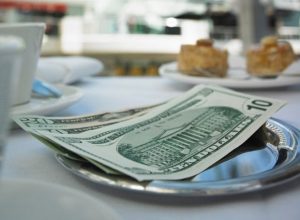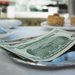 Restaurant table with money on plate