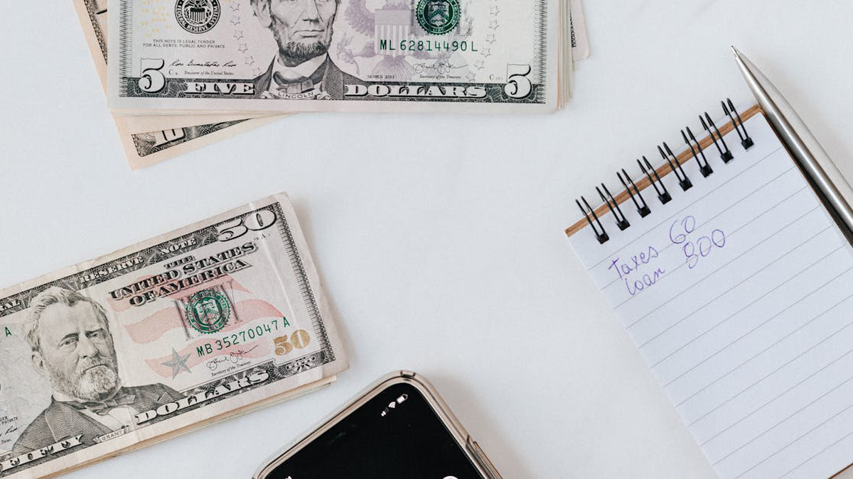 Two Piles Of Cash On A Table With A Calculator And Notepad