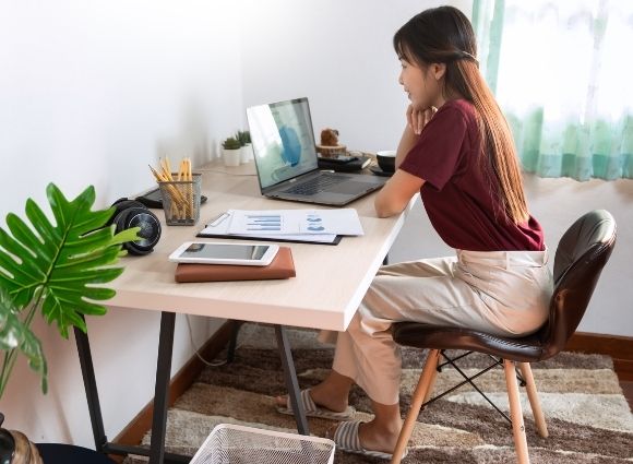 Woman working in a home office