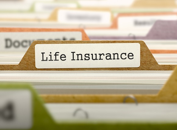 File Folder Labeled as Life Insurance in Multicolor Archive. Closeup View. Blurred Image.